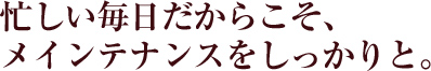恋に仕事に忙しい毎日。日頃のケアはもちろんですがそれに加えて定期メインテナンスをしっかりとやれば大丈夫。