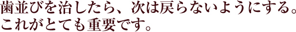それゆえ、一定期間(一年〜移動治療に要した期間)保定装置を入れる必要があります。