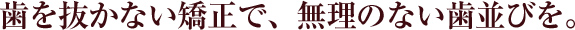 抜かない矯正方法は二つあります。1つは歯の並んでいるアーチを少し膨らませる事によって歯並びを良くする方法。もう1つはわずかずつ少し膨らんでいる歯を細くすることによって隙間をつくり歯並びを良くする方法です。